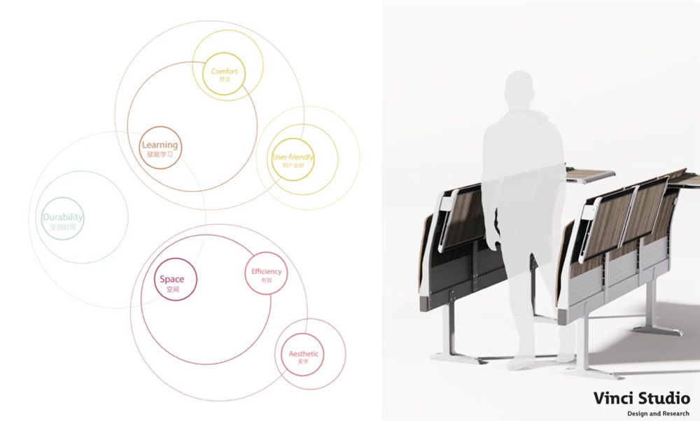Vinci Studio将自身对学校家具和教育空间的理解,物化为产品设计,希望通过对教学家具的优化和创新设计,为更出色的教学空间助力,为用户学习赋能,协助学校实现其追求卓越的使命。